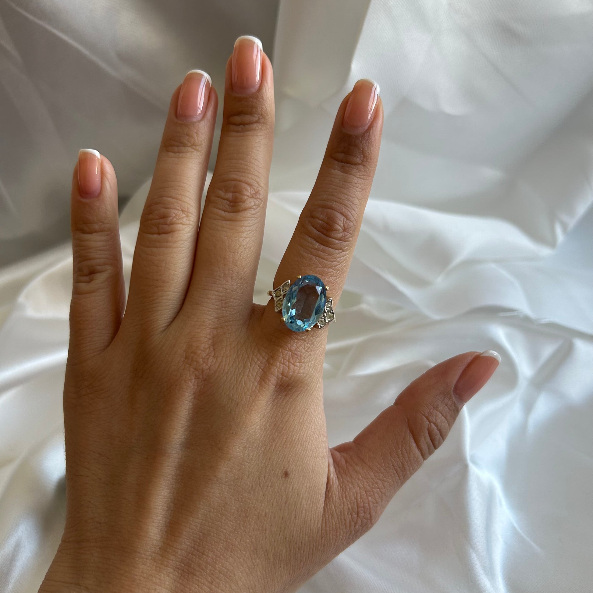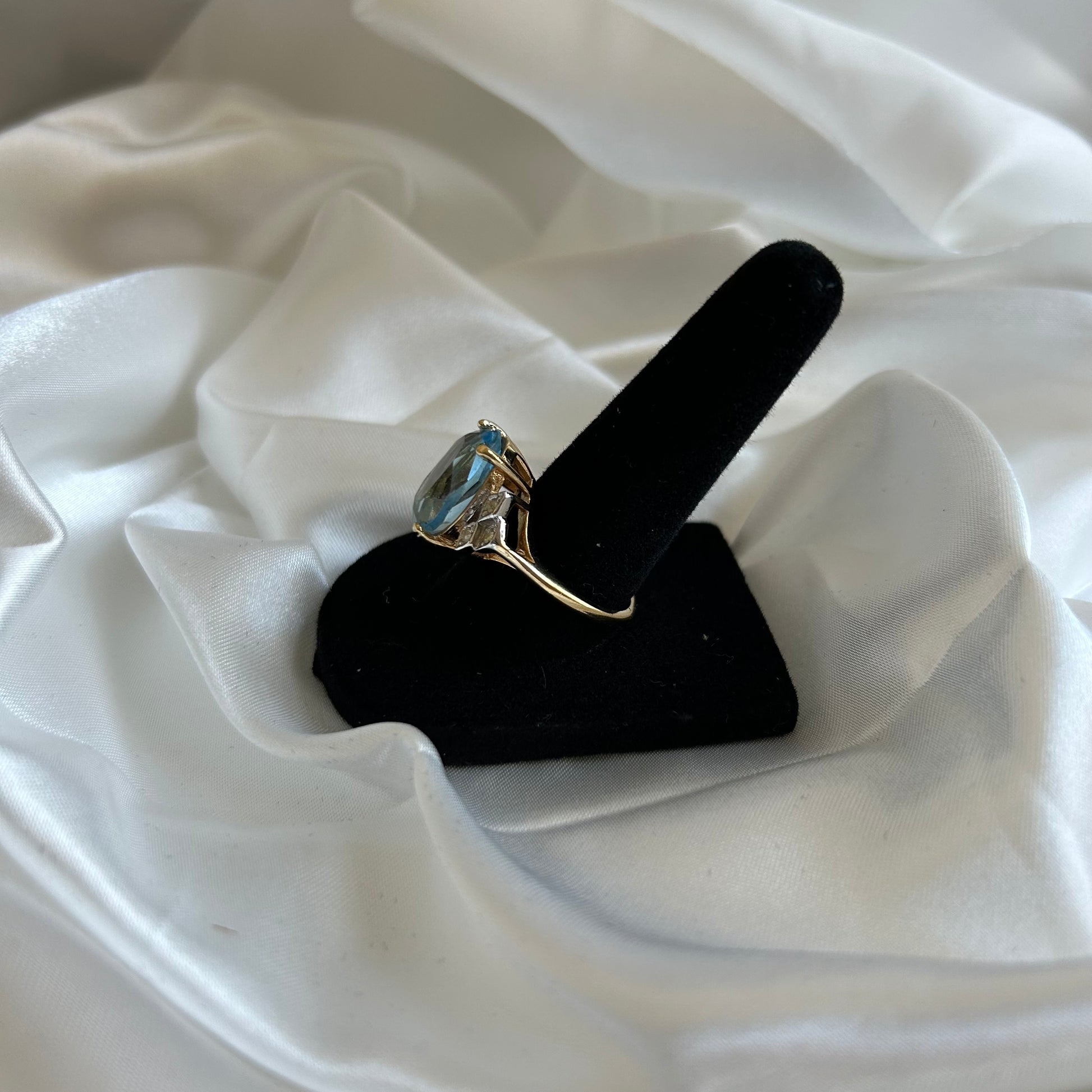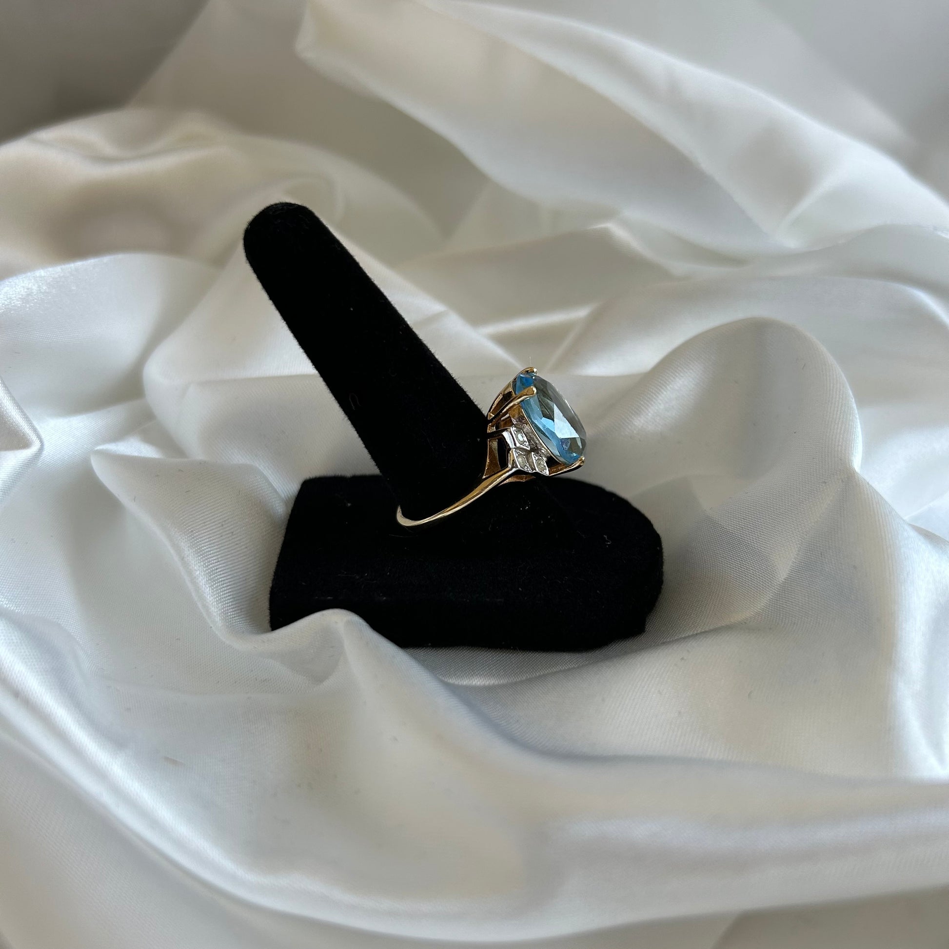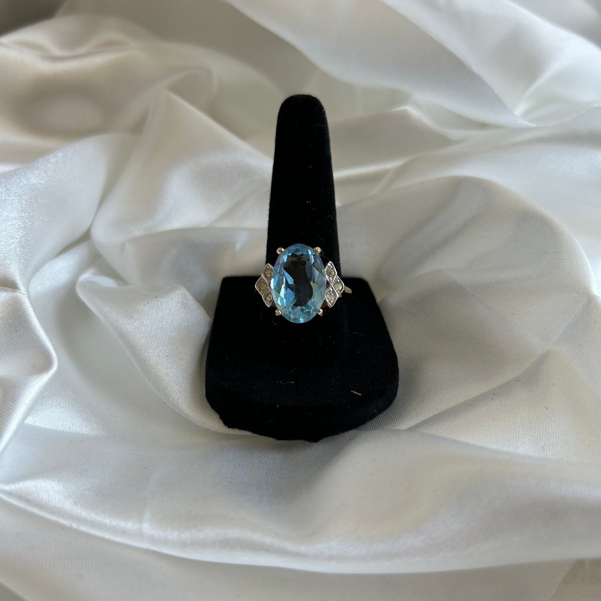 18K HGE Blue Topaz and Rhinestone Ring (US Size 7 3/4)