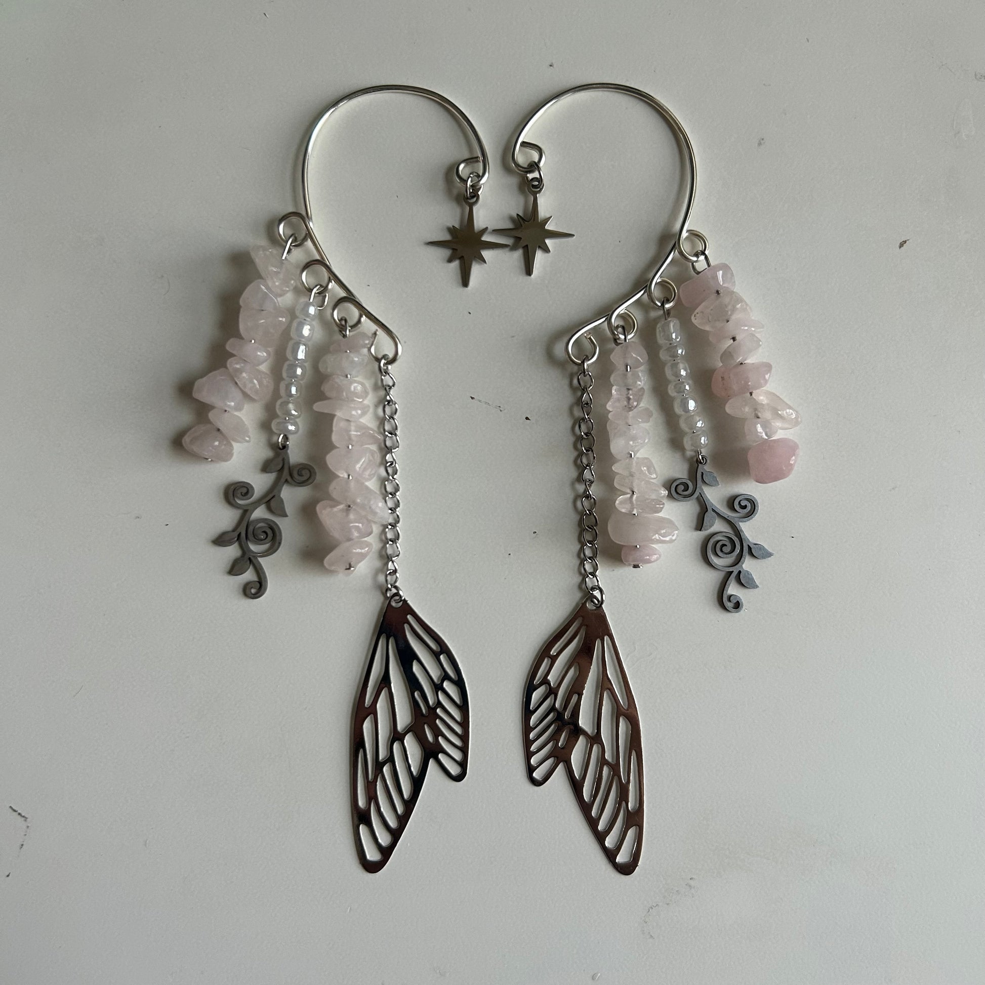 Rose Quartz Butterfly Wing Ear Cuffs