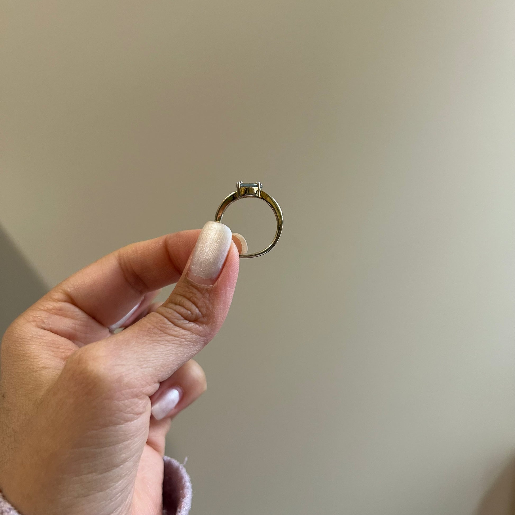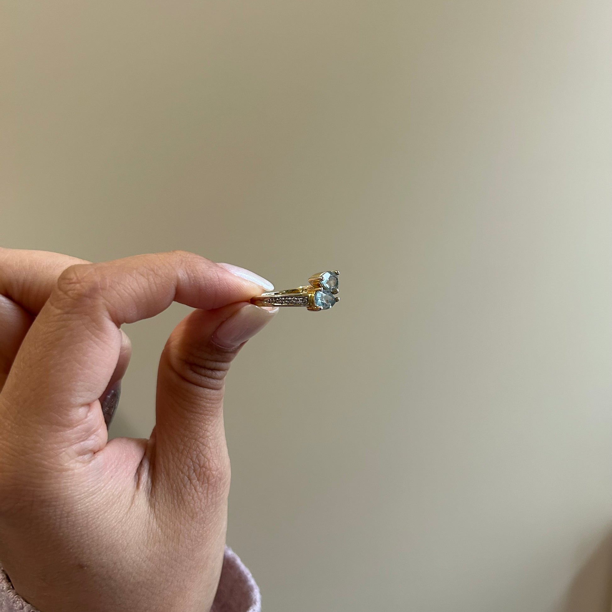 Vintage aquamarine sterling silver ring. Stamped 925. Two tone. Features two aquamarine stones that look like it’s wrapping around your finger. Size US 7.5. Ships with ring box and cleaning cloth.